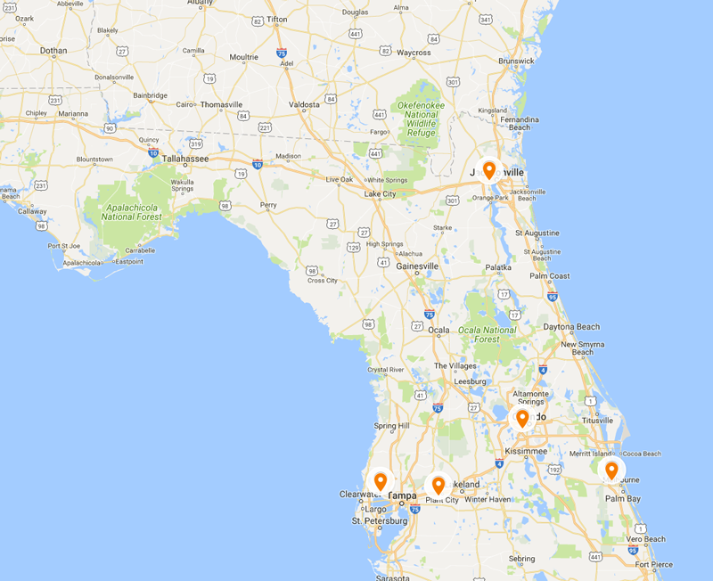 Florida Fresh Vending has 4 offices throughout Central and North Florida and can service the entire region including Tampa, Orlando, St. Petersburg, Clearwater, Cocoa, Melbourne, Jacksonville and more.